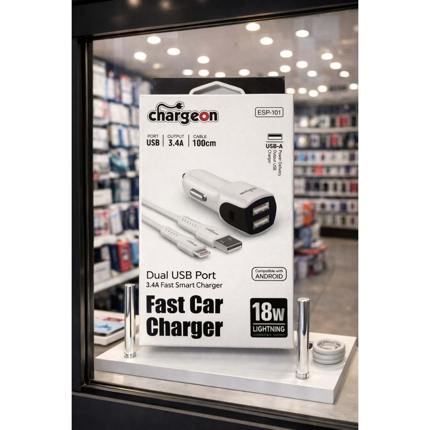 ESP-101 Chargeon 18W 3.4A Oto Şarj + Lightning Kablo