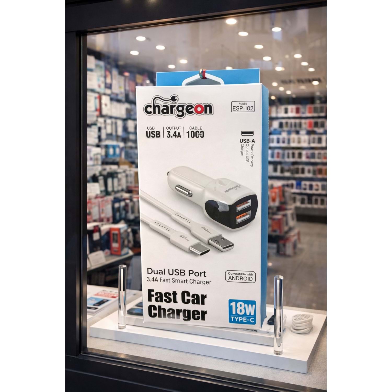 ESP-102 Chargeon 18W 3.4A Oto Şarj + Type C Kablo