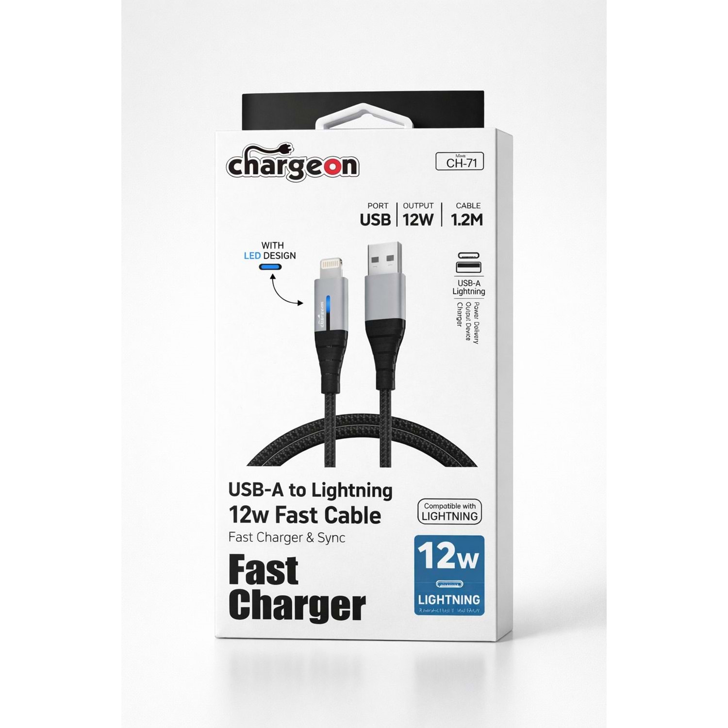 CH-71 Chargeon 12W USB A to Lightning Işıklı Fast Şarj Kablosu